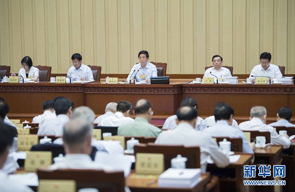 全国人大常委会副委员长曹建明、张春贤、沈跃跃、吉炳轩、艾力更·依明巴海、万鄂湘、陈竺、白玛赤林、丁仲礼、郝明金、蔡达峰、武维华,秘书长杨振武出席会议。