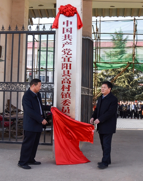 2月23日上午,宜阳县高村乡举行撤乡建镇暨高村镇揭牌仪式,高村乡机关干部、乡直单位负责人以及39个行政村的支部书记、村委主任等120余人,共同见证了这一重要时刻。宜阳县民政局长宋茂欣宣读了省民政厅的批复文件,宜阳县副县长金洪敏为高村镇揭牌。