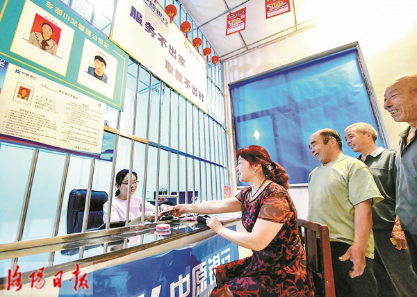 为消除农村地区金融服务空白区,满足农村群众基本金融服务需求,该区金融办、组织部积极引导辖区金融机构设立入村服务点。村民通过服务点办理小额取款、现金和转账汇款、业务查询、代缴电费、电话费、有线电视费、社保费等业务,足不出户就可以享受到综合、便捷的金融业务,有效地缓解农村“支付难、结算难”问题。(洛阳日报记者 刘冰 特约通讯员 张俊望 摄)